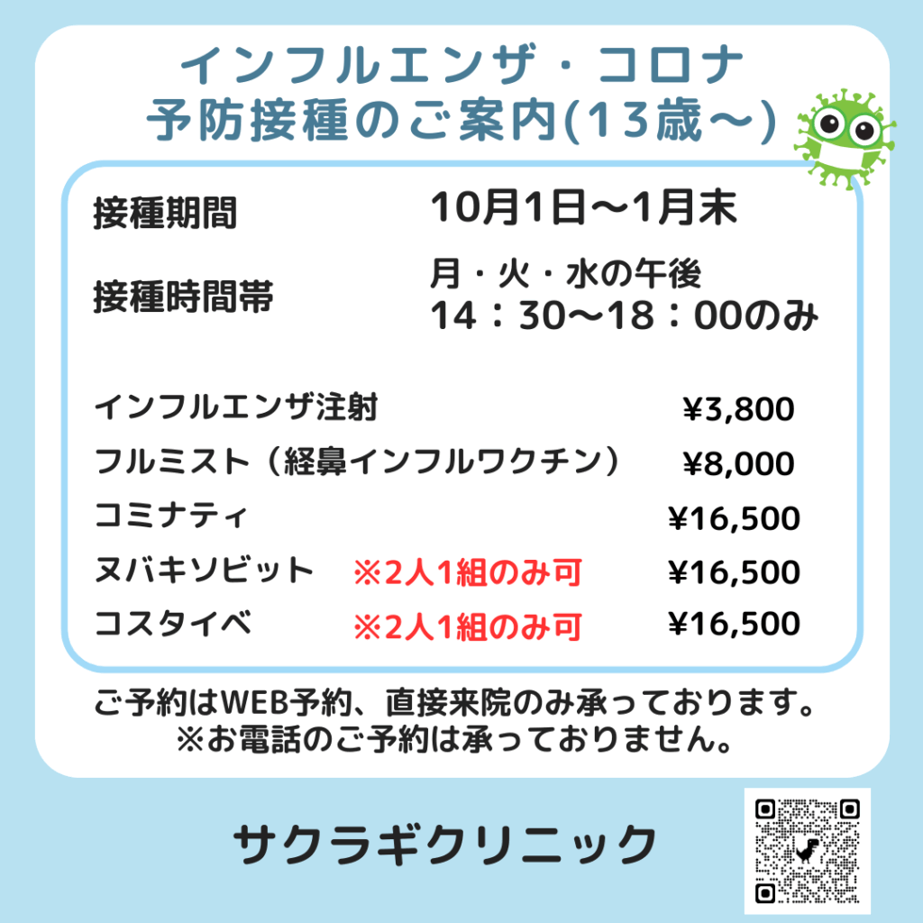 ②発熱、体調不良のある方は接種を延期させていただきます。