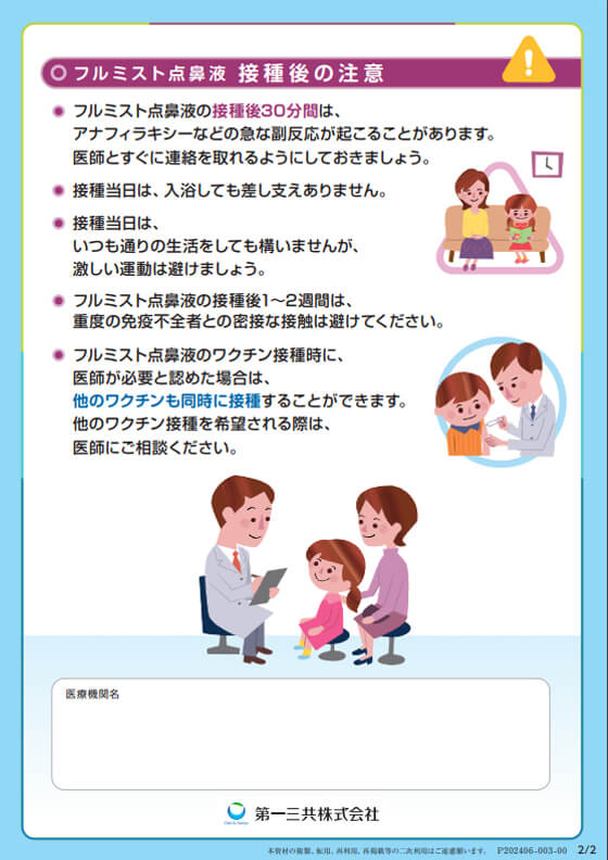 製薬企業が提供している接種者さま向け指導せんもご一読ください。