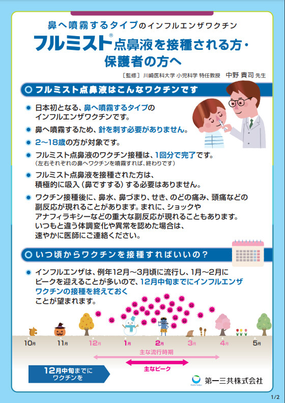 フルミストは、注射ではなく鼻にスプレーするタイプのインフルエンザワクチンです。