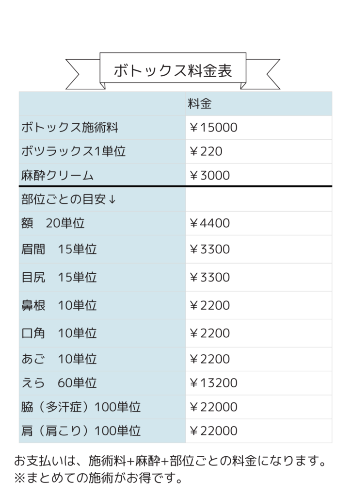 - ボトックス施術料 15,000円